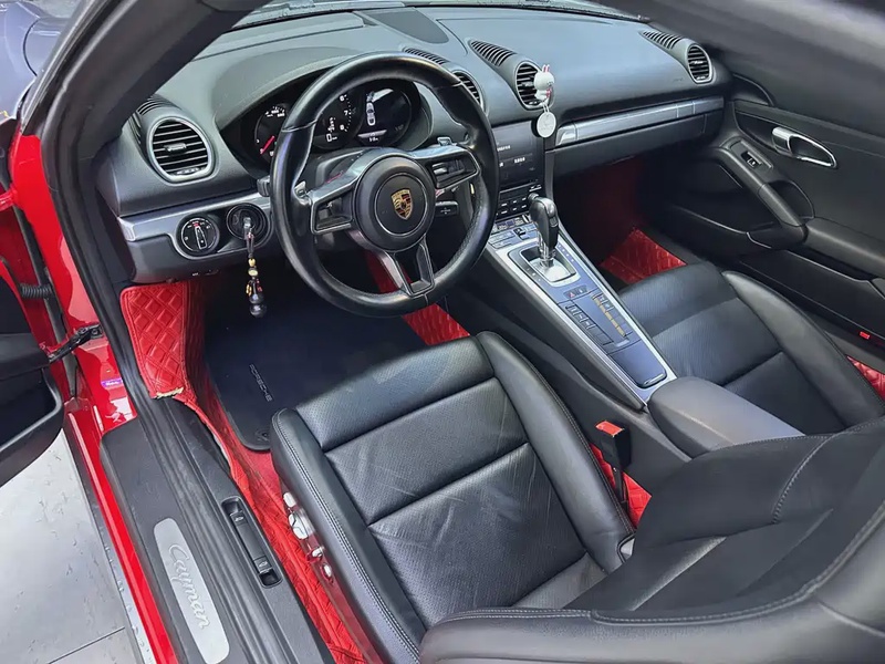 Porsche 718 Cayman 2018 года выпуска оснащён бензиновым двигателем объёмом 2.0 литра с турбонаддувом, развивающим мощность 250 лошадиных сил. Автомобиль имеет задний привод и комплектацию Cayman с автоматической 7-ступенчатой коробкой передач. Пробег составляет 80 тысяч километров, что соответствует умеренной эксплуатации для данного возраста. По данным осмотра кузовные элементы не имеют повреждений, а страховая история отсутствует, что свидетельствует об аккуратном использовании и отсутствии серьёзных инцидентов. С учётом пробега можно отметить хорошую сохранность основных узлов и агрегатов. Интерьер поддерживается в достойном состоянии, характерном для автомобилей подобного класса с пробегом до 100 тысяч километров. Типичный режим эксплуатации включал городские поездки и загородные маршруты. Автомобиль находится в Китае и доступен к покупке с последующей доставкой в Россию.