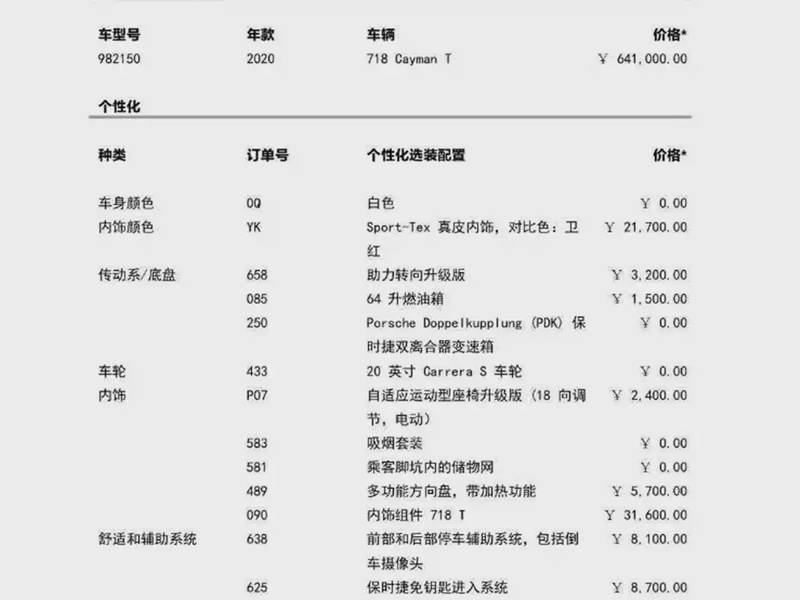 Модель Porsche 718 представлена в кузове купе и выпущена в 2020 году. Автомобиль оснащён бензиновым двигателем с турбонаддувом объёмом 2.0 литра, который работает в паре с семиступенчатой автоматической трансмиссией. Привод у данной комплектации задний, что обеспечивает характерную для спортивных автомобилей динамику управления. По истории эксплуатации пробег составляет 13 тыс. км, что является умеренным показателем для данного возраста модели и свидетельствует о преимущественно аккуратной эксплуатации, возможно, в смешанном режиме городских поездок и загородных трасс. С учётом данных осмотра состояние автомобиля можно оценить как хорошее: отсутствие повреждённых деталей указывает на бережное отношение владельца к внешнему виду и сохранности кузова. Страховая история не содержит обращений, что подтверждает отсутствие серьёзных инцидентов за время использования. Интерьер сохранился в типичном для данного пробега состоянии без видимых следов износа. Автомобиль находится в Китае и доступен к покупке с последующей доставкой в Россию.