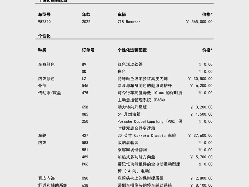 Модель представлена Porsche 718 Boxster 2022 года выпуска с бензиновым двигателем объемом 2.0 литра, установленным по схеме среднемоторной компоновки. Автомобиль оснащен системой полного привода и комплектацией Boxster, которая включает спортивные характеристики и открытый кузов. Пробег составляет всего 13 тыс. км, что свидетельствует об ограниченной эксплуатации преимущественно в городских условиях. По данным осмотра, кузовные элементы не имеют повреждений, что указывает на аккуратное вождение и бережное обслуживание. Страховая история отсутствует, без зафиксированных обращений и выплат, что подтверждает безаварийное состояние транспортного средства. С учётом пробега, интерьер сохранил первоначальный вид без значительного износа материалов отделки. Характер эксплуатации соответствует смешанному режиму с преобладанием городских поездок, при этом техническое обслуживание проводилось согласно регламенту производителя. Типичное состояние для данного пробега оценивается как отличное, с минимальными признаками эксплуатации. Автомобиль находится в Китае и доступен к покупке с последующей доставкой в Россию.