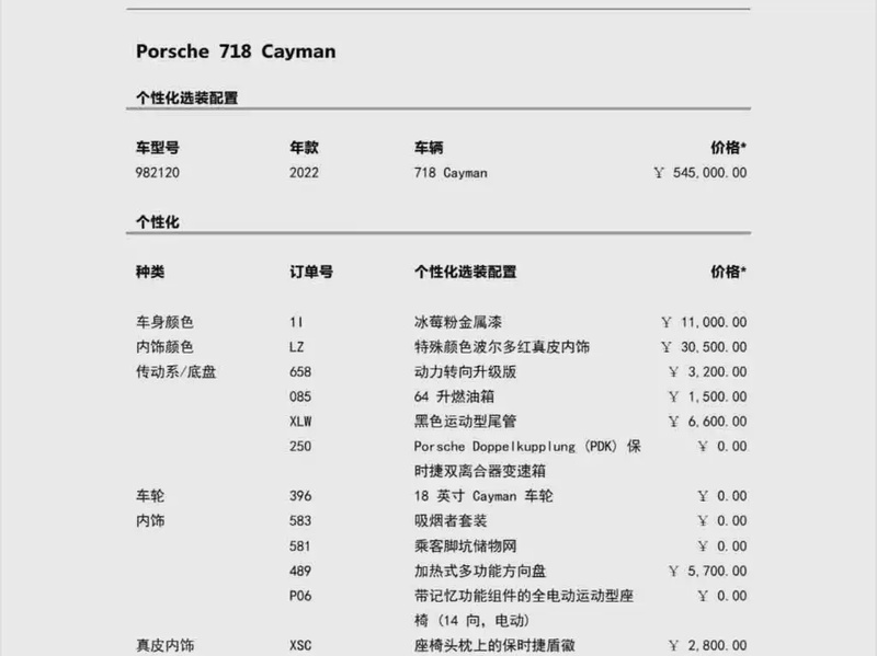 Модель представлена в 2022 году и оснащена бензиновым двигателем с рабочим объёмом 2.0 литра, который обеспечивает сбалансированную динамику для смешанных условий эксплуатации. Автомобиль имеет задний привод и комплектацию Cayman 2.0T, что подразумевает спортивный характер при сохранении повседневной практичности. Пробег составляет 32 тыс. км, что является умеренным показателем для данного возраста; типичное состояние для такого пробега предполагает аккуратное обслуживание и сохранность основных узлов. По данным осмотра кузовные повреждения отсутствуют, а страховых обращений зафиксировано не было, что косвенно свидетельствует о спокойной эксплуатации без серьёзных инцидентов. С учётом пробега и отсутствия заявленных повреждений общее состояние автомобиля оценивается как хорошее, интерьер сохраняет презентабельный вид благодаря бережному использованию преимущественно в городском режиме. Автомобиль находится в Китае и доступен к покупке с последующей доставкой в Россию.
