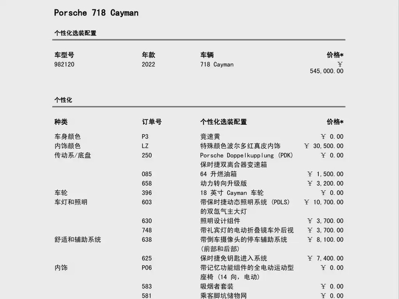 Модель Porsche 718 представлена в кузове Cayman 2022 года выпуска с бензиновым двигателем объемом 2.0 литра, оснащенным турбонаддувом. Автомобиль имеет задний привод и комплектацию, включающую автоматическую коробку передач с двойным сцеплением на 7 ступеней. Пробег составляет 28 тыс. км, что соответствует умеренной эксплуатации, характерной для смешанного режима использования в городских условиях и на трассе. По данным осмотра кузовные работы не зафиксированы, а страховая история не содержит обращений и выплат, что указывает на аккуратную эксплуатацию и отсутствие серьезных инцидентов. С учётом пробега состояние автомобиля оценивается как хорошее: интерьер сохраняет первоначальный вид, техническое обслуживание проводилось регулярно, что типично для данного километража. Автомобиль находится в Китае и доступен к покупке с последующей доставкой в Россию.