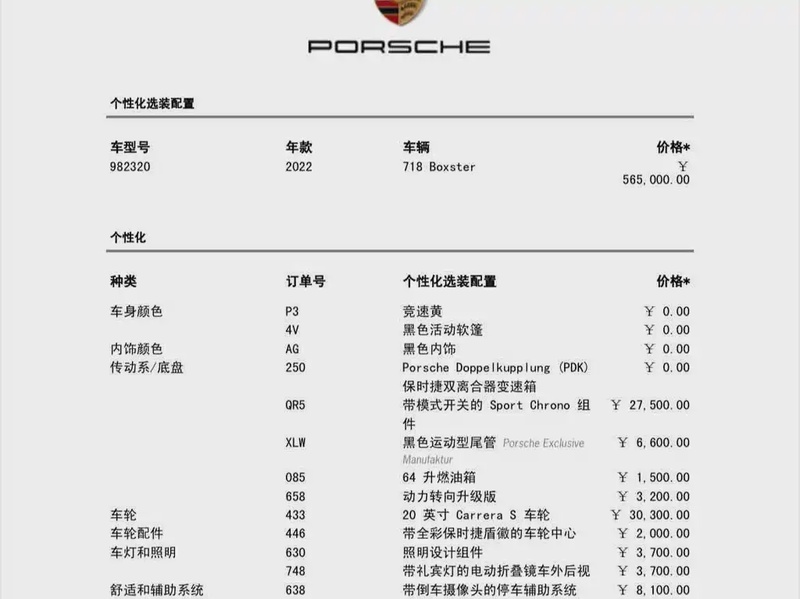 Porsche 718 Boxster 2022 года представляет собой спортивный автомобиль с бензиновым двигателем объемом 2.0 литра, оснащенный системой турбонаддува. Модель комплектуется автоматической трансмиссией и задним приводом, что обеспечивает динамичные характеристики управления. Пробег автомобиля составляет 34 тыс. км, преимущественно в городских условиях с элементами загородной эксплуатации. По данным осмотра кузовные элементы сохранили заводское состояние без следов ремонтных работ, интерьер отличается аккуратностью, соответствующей пробегу. Страховая история не содержит зафиксированных обращений, что свидетельствует об осторожной эксплуатации и отсутствии серьезных инцидентов. С учетом технического состояния автомобиль демонстрирует типичные для данного пробега характеристики износа при регулярном обслуживании. Автомобиль находится в Китае и доступен к покупке с последующей доставкой в Россию.