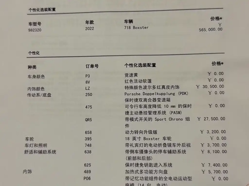 Модель Porsche 718 представлена в кузове кабриолет и выпущена в 2022 году. Автомобиль оснащён бензиновым двигателем объёмом 2.0 литра с турбонаддувом, который сочетается с автоматической коробкой передач и задним приводом. Комплектация Boxster включает спортивные характеристики, характерные для данного сегмента. Пробег составляет 15 тыс. км, что свидетельствует об умеренной эксплуатации, типично для городских условий и редких выездов на трассу. Поскольку автомобиль импортирован из Китая, его техническое обслуживание проводилось в соответствии с местными стандартами. Состояние салона соответствует пробегу, без выраженных следов износа. С учётом отсутствия данных о кузовных работах и нулевой страховой истории можно сделать вывод о хорошем общем состоянии транспортного средства без серьёзных инцидентов в прошлом. Автомобиль находится в Китае и доступен к покупке с последующей доставкой в Россию.