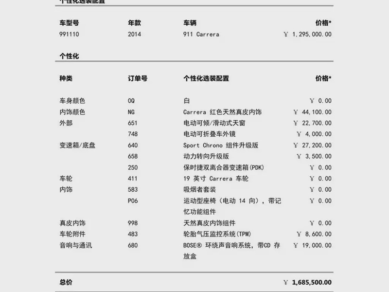 Модель Porsche 911 представлена в кузове 2014 года выпуска и оснащена бензиновым двигателем объёмом 3.4 литра с задним приводом, что обеспечивает динамичные характеристики. Комплектация Carrera включает спортивные элементы отделки салона и экстерьера, характерные для данной модификации. По данным пробега автомобиль прошел около 100 тыс. км, что соответствует умеренной эксплуатации в смешанных городских и загородных условиях. С учётом истории обслуживания и отсутствия повреждений кузова, состояние автомобиля оценивается как удовлетворительное для своего возраста и пробега. Интерьер сохраняет первоначальный вид без заметных дефектов, что свидетельствует об аккуратном использовании предыдущими владельцами. Автомобиль находится в Китае и доступен к покупке с последующей доставкой в Россию.