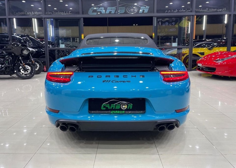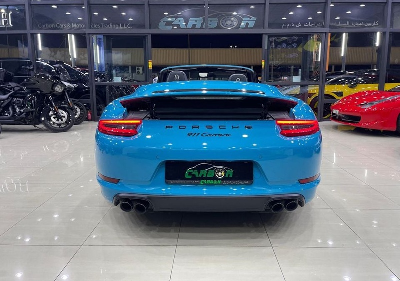 Модель Porsche 911 представлена в кузове кабриолет. Автомобиль выпущен в 2018 году и оснащён бензиновым двигателем объёмом 3.6 литра, который работает в паре с автоматической коробкой передач. Привод автомобиля — задний, что обеспечивает характерную для данной модели динамику и управляемость. Комплектация Carrera включает спортивные сиденья, мультимедийную систему и кожаный салон чёрного цвета. По данным осмотра, кузовные элементы не имеют повреждений, что свидетельствует об аккуратном использовании автомобиля преимущественно в городских условиях. С учётом пробега 43 тыс. км интерьер сохранился в отличном состоянии без признаков износа, что типично для данного года выпуска при регулярном обслуживании у официальных дилеров. Страховая история отсутствует, что указывает на безаварийную эксплуатацию транспортного средства за весь период владения. Автомобиль находится в ОАЭ и доступен к покупке с последующей доставкой в Россию.