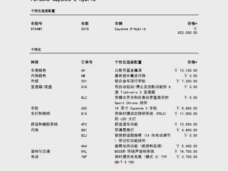 Модель представлена в 2019 году и оснащена гибридной силовой установкой с бензиновым двигателем объемом 2,0 литра. Автомобиль имеет полный привод AWD и комплектацию Cayenne E-Hybrid 2.0T. Пробег составляет 102 тыс. км, что соответствует умеренной эксплуатации преимущественно в городских условиях с периодическими выездами на трассу. По данным осмотра кузовные повреждения отсутствуют, что свидетельствует об аккуратном использовании транспортного средства. Страховая история не содержит обращений, что указывает на отсутствие серьезных инцидентов за время эксплуатации. С учётом пробега автомобиль демонстрирует типичное для данного возраста состояние с сохранным интерьером и регулярным техническим обслуживанием. Автомобиль находится в Китае и доступен к покупке с последующей доставкой в Россию.