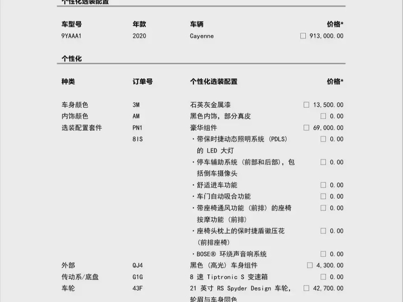 Автомобиль Porsche Cayenne 2020 года выпуска оснащён бензиновым двигателем объёмом 3.0 литра с турбонаддувом, мощностью 340 лошадиных сил, и автоматической восьмиступенчатой трансмиссией. Модель представлена в полноприводном исполнении (AWD) и комплектации Cayenne 3.0T, которая включает такие элементы, как кожаный салон, мультимедийная система с навигацией и климат-контроль. Пробег автомобиля составляет 80 тыс. км, что соответствует смешанному режиму эксплуатации — городские поездки и трасса. По данным осмотра кузовные повреждения отсутствуют, а интерьер сохранился в хорошем состоянии для данного пробега. Страховая история не содержит обращений и выплат, что указывает на аккуратную эксплуатацию и отсутствие серьёзных инцидентов. С учётом пробега и технического обслуживания автомобиль демонстрирует типичное состояние для возраста: все системы работают штатно, расходные материалы заменены согласно регламенту. Автомобиль находится в Китае и доступен к покупке с последующей доставкой в Россию.