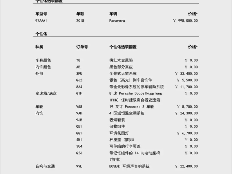 Porsche Panamera 2018 года выпуска представляет собой премиальный пятидверный лифтбэк с бензиновым двигателем V6 объёмом 3.0 литра с турбонаддувом. Автомобиль оснащён восьмиступенчатой автоматической коробкой передач и задним приводом, что обеспечивает динамичные характеристики разгона до 100 км/ч за 5.7 секунды. По истории эксплуатации пробег составляет 80 тысяч километров, что соответствует умеренной нагрузке с преимущественно городским и смешанным режимом использования. Комплектация Panamera 3.0T включает полноценное оснащение премиум-класса с электронной системой управления, мультимедийным комплексом и климат-контролем. С учётом пробега техническое состояние оценивается как хорошее, характерное для автомобилей данного возраста и интенсивности эксплуатации. Интерьер сохранил первоначальное качество отделки, все системы функционируют штатно. Автомобиль находится в Китае и доступен к покупке с последующей доставкой в Россию.