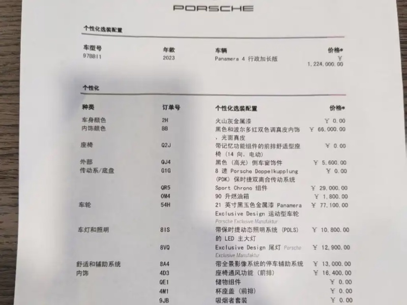 Модель Porsche Panamera представлена в версии 2023 года выпуска. Автомобиль оснащён бензиновым двигателем объёмом 2,9 литра с турбонаддувом, который работает в паре с автоматической коробкой передач и системой полного привода AWD. Комплектация включает расширенные опции для обеспечения комфорта и функциональности в повседневной эксплуатации. Пробег составляет 27 тысяч километров, что соответствует умеренному использованию преимущественно в городских условиях с периодическими выездами на трассу. По данным осмотра кузовные элементы не имеют повреждений, что свидетельствует об аккуратном обращении с автомобилем. Страховая история не содержит обращений, что указывает на отсутствие серьёзных инцидентов за время эксплуатации. С учётом пробега и технического состояния автомобиль демонстрирует хорошую сохранность интерьера и ходовой части, типичную для данного возраста и режима использования. Обслуживание проводилось регулярно, что способствует поддержанию надёжности всех систем. Автомобиль находится в Китае и доступен к покупке с последующей доставкой в Россию.