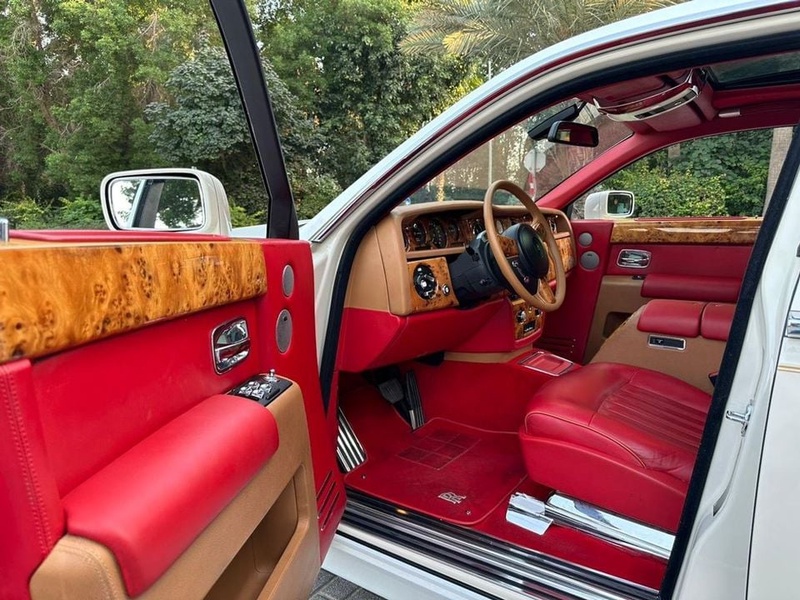 Представлен автомобиль Rolls-Royce Phantom 2007 года выпуска с бензиновым двигателем V12 объёмом 6.8 литра и задним приводом. Модель относится к комплектации Ultra Luxury с дополнительными элементами тюнинга Mansory, включая 22-дюймовые диски. Пробег составляет 130 тысяч километров, что для автомобиля данного класса свидетельствует об умеренной эксплуатации преимущественно в городских условиях. По данным осмотра кузовные элементы не имеют повреждений, а страховая история отсутствует — это указывает на аккуратное использование и отсутствие серьёзных инцидентов. С учётом пробега и технического состояния можно отметить хорошую сохранность интерьера в красной цветовой гамме и штатных систем автомобиля. Автомобиль находится в ОАЭ и доступен к покупке с последующей доставкой в Россию.