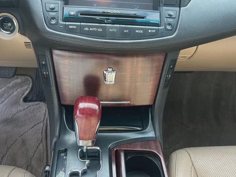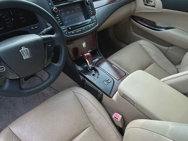 Toyota Crown 2011 года выпуска представляет собой представительный седан бизнес-класса с бензиновым двигателем V6 объемом 2.5 литра мощностью 193 л.с. Автомобиль оснащен шестиступенчатой автоматической трансмиссией и задним приводом, что обеспечивает уверенную динамику и комфорт при движении. Комплектация Royal Special Edition включает кожаный салон, панорамную крышу и дополнительные опции премиум-уровня. Пробег составляет 210 тысяч километров, что соответствует умеренной эксплуатации с преимущественно городским и смешанным режимом использования. По данным осмотра, автомобиль не имеет зафиксированных кузовных повреждений и не участвовал в страховых случаях, что свидетельствует о бережной эксплуатации и хорошем техническом состоянии. С учетом пробега сохранность интерьера оценивается как удовлетворительная, характерная для данного возраста автомобиля. Техническое обслуживание проводилось регулярно согласно регламенту производителя. Автомобиль находится в Китае и доступен к покупке с последующей доставкой в Россию.