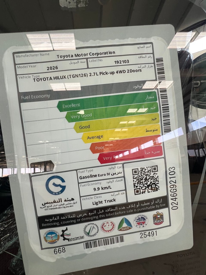 Представленная модель Toyota Hilux 2026 года выпуска оснащена бензиновым двигателем с механической коробкой передач. Автомобиль относится к комплектации GLX 2.7L Single Cab Utility и имеет привод, тип которого не указан в данных. Пробег транспортного средства составляет 0 тыс. км, что соответствует новому или практически новому состоянию без эксплуатационных следов износа. По данным осмотра, кузовные повреждения отсутствуют, а страховая история не содержит зафиксированных обращений, что свидетельствует о безаварийной эксплуатации и сохранности оригинальных элементов. Учитывая нулевой пробег и отсутствие страховых случаев, автомобиль характеризуется отличным техническим состоянием, типичным для новых экземпляров данной модели. Интерьер сохраняет заводское качество без признаков интенсивного использования, а техническое обслуживание проводилось в соответствии с регламентом. Модель представлена в кузове SUV белого цвета с нейтральной отделкой салона, что обеспечивает универсальность для различных условий эксплуатации — как городских поездок, так и загородных маршрутов. С учётом происхождения из Объединённых Арабских Эмиратов, автомобиль эксплуатировался в благоприятных климатических условиях, способствующих сохранности лакокрасочного покрытия и узлов шасси. Автомобиль находится в Объединённых Арабских Эмиратах и доступен к покупке с последующей доставкой в Россию.