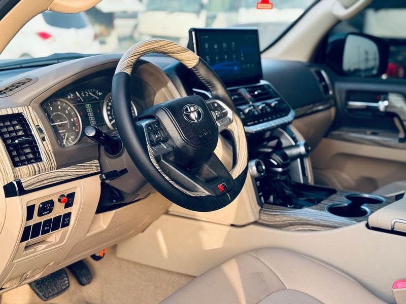 Toyota Land Cruiser 2015 года выпуска представлен с бензиновым двигателем и автоматической трансмиссией. Автомобиль оснащён полным приводом и комплектацией с улучшенной отделкой салона бежевого цвета и дисками 20 дюймов. Пробег составляет 40 тыс. км, что свидетельствует об умеренной эксплуатации преимущественно в городских условиях. По данным осмотра, кузовные элементы не имеют повреждений, а страховые обращения отсутствуют, что указывает на аккуратное вождение и бережное обслуживание. С учётом пробега, техническое состояние соответствует низкому уровню износа: сохранность интерьера оценивается как хорошая, характерная для автомобилей с подобным пробегом. Автомобиль импортирован из ОАЭ и доступен к покупке с последующей доставкой в Россию.