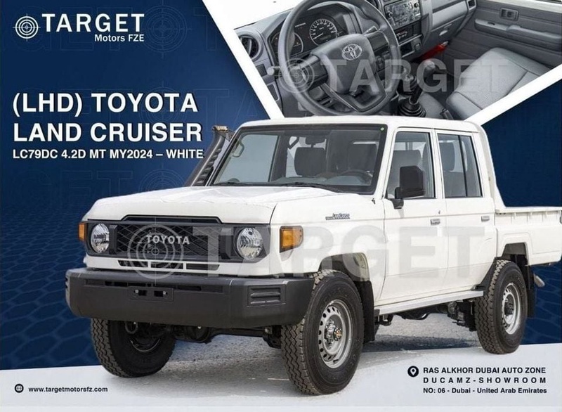 Toyota Land Cruiser 2024 года выпуска представлен в комплектации LAND CRUISER LC79 DUBL CAPIN с дизельным двигателем объемом 4.2 литра и системой полного привода AWD. Автомобиль имеет нулевой пробег, что свидетельствует о его абсолютно новом состоянии без следов эксплуатации. Модель оснащена механической коробкой передач, что обеспечивает надежность и простоту обслуживания в условиях бездорожья. По данным осмотра кузовные элементы не имеют повреждений, а страховые данные показывают отсутствие обращений по страховым случаям, что подтверждает безупречное техническое состояние транспортного средства. С учетом заводской комплектации и сохранности всех узлов автомобиль демонстрирует высокий потенциал для эксплуатации в сложных дорожных условиях. Интерьер выполнен в серой цветовой гамме и сохраняет первоначальный вид без видимых признаков износа. Автомобиль находится в ОАЭ и доступен к покупке с последующей доставкой в Россию.