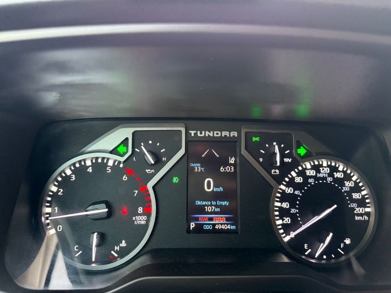 Toyota Tundra 2022 года выпуска представляет собой полноразмерный пикап с бензиновым двигателем Twin Turbo 3.5 V6 и автоматической трансмиссией. Автомобиль оснащён системой полного привода AWD и комплектацией TRD Sport, которая включает спортивную подвеску, 20-дюймовые диски и экстерьерные акценты. С учётом пробега 49 тысяч километров модель демонстрирует характерные для данного возраста признаки эксплуатации — преимущественно городской и шоссейный режим с аккуратным обслуживанием. По данным осмотра кузовные элементы не имеют повреждений, что свидетельствует о бережной эксплуатации. Сохранность салона в бежевых тонах соответствует типичному состоянию для автомобиля с таким пробегом. Автомобиль находится в ОАЭ и доступен к покупке с последующей доставкой в Россию.