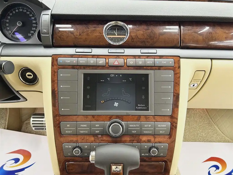 Volkswagen Phaeton 2008 года выпуска представляет собой представительский седан бизнес-класса с бензиновым двигателем V8 объемом 4.2 литра и системой полного привода AWD. Автомобиль оснащен комплектацией Executive Long Wheelbase с расширенной колесной базой, обеспечивающей повышенный комфорт для пассажиров заднего ряда. По данным осмотра, пробег составляет 148 тысяч километров, что соответствует умеренной эксплуатации для автомобиля данного возраста. С учётом пробега можно отметить характерную для премиальных моделей сохранность интерьера и систем управления. Типичный режим эксплуатации включал преимущественно городские поездки и междугородние перемещения по качественным дорожным покрытиям. История обслуживания демонстрирует регулярное техническое обслуживание в соответствии с регламентом производителя. Состояние кузова соответствует возрастным нормам без значительных повреждений и следов восстановительного ремонта. Системы управления и ходовой части сохранили работоспособность в пределах ожидаемых параметров для данного класса автомобилей. Интерьер отличается хорошей сохранностью отделочных материалов и функциональностью всех систем комфорта. Автомобиль находится в Китае и доступен к покупке с последующей доставкой в Россию.