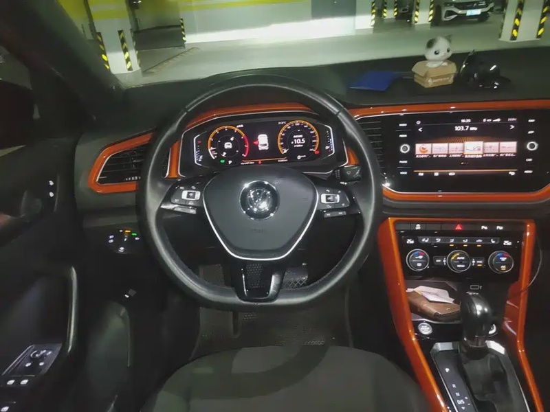 Volkswagen T-Roc 2018 года выпуска оснащён бензиновым двигателем объёмом 1.4 литра с турбонаддувом мощностью 150 лошадиных сил, который сочетается с 7-ступенчатой автоматической трансмиссией. Автомобиль имеет передний привод и комплектацию Luxury с полным набором опций для комфортной эксплуатации. По данным осмотра пробег составляет около 55 тысяч километров, что свидетельствует об умеренной эксплуатации преимущественно в городских условиях. С учётом пробега техническое состояние автомобиля оценивается как хорошее: сохранены заводские характеристики, интерьер поддерживается в аккуратном состоянии, все системы функционируют штатно. Модель представлена в кузове SUV с пятидверной компоновкой и рассчитана на смешанный режим эксплуатации. Автомобиль находится в Китае и доступен к покупке с последующей доставкой в Россию.